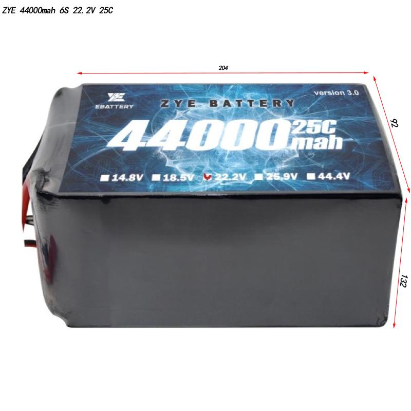 44000mAh | 6S1p (22.2V) | 4990g (± 10g) | 204*92*132mm | 976.8Wh | 25c 1100a | 50c 2200A |