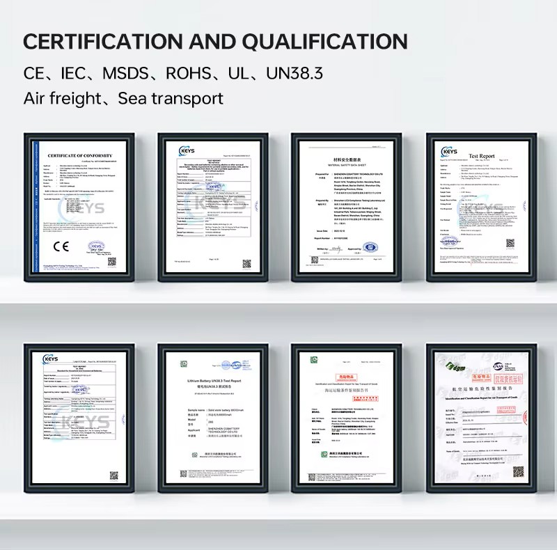 Bizimyeni katı hal pillerigüvenlik ve güvenilirlik sağlayan uluslararası standartları karşıladığı onaylanmıştır: